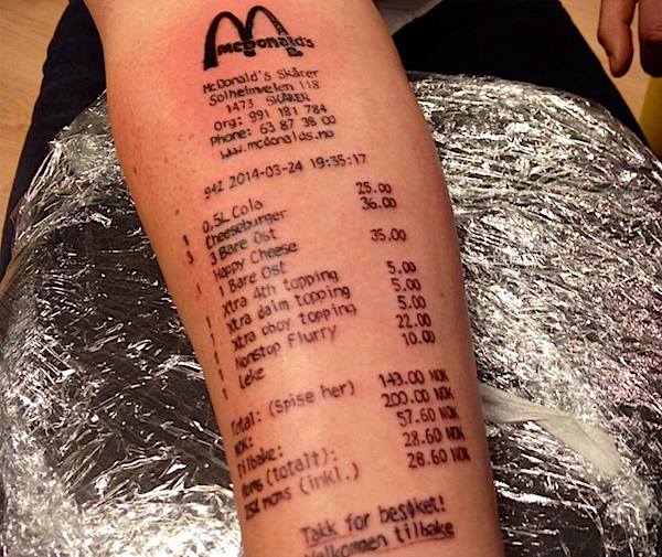 Man Gets Restaurant Receipt Tatted On His Arm! [Video]