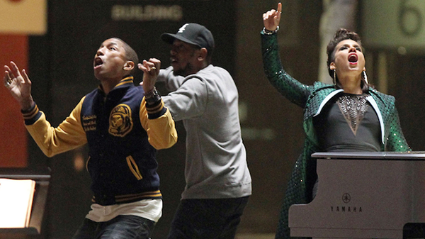 So The Spiderman hype is in full swing! Alicia Keys, araabMUZIK , Hans Zimmer (legendary music composer [Google him] ) and Kendrick Lamar hit up Jimmy Fallon to bless us with this very rare performance of “It’s On Again”. This Pharrell produced song is exclusively for the Spiderman soundtrack.